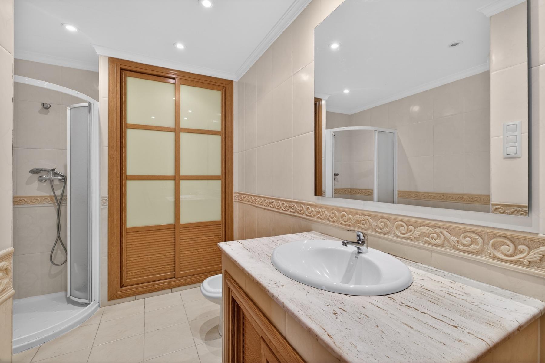 La planta principal te recibe con luz a raudales. El gran salón con chimenea será el testigo de vuestras reuniones, enmarcado por ventanales con vistas espectaculares a la bahía. Aquí también encontrarás la cocina-office, un dormitorio doble con balcón, un segundo dormitorio amplio y un baño.